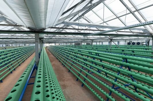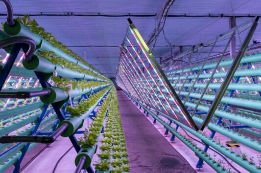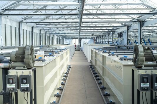 Aquaponik-, Hydroponik- oder RAS-Farm.